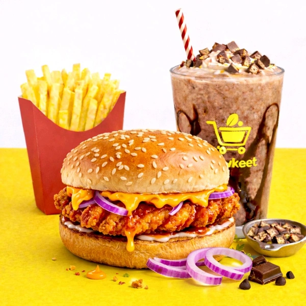 Paneer Tikki Burger With French Fry