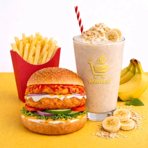 Spicy Paneer And Aloo Tikki Burger With French Fry