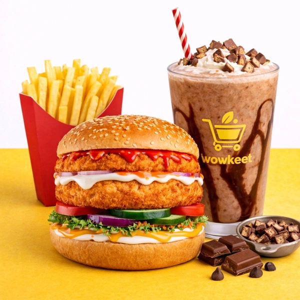 Spicy Paneer And Aloo Tikki Burger With French Fry